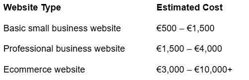 The cost usually ranges between €500 and €4,000 for most business websites, depending on design complexity and features.