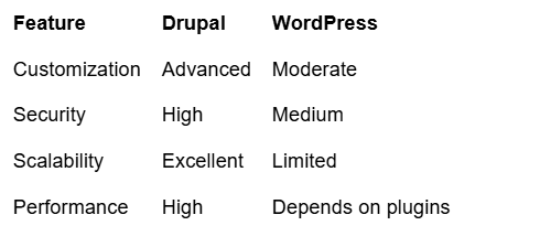 Drupal is ideal for complex, high-traffic websites that require scalability and security.
